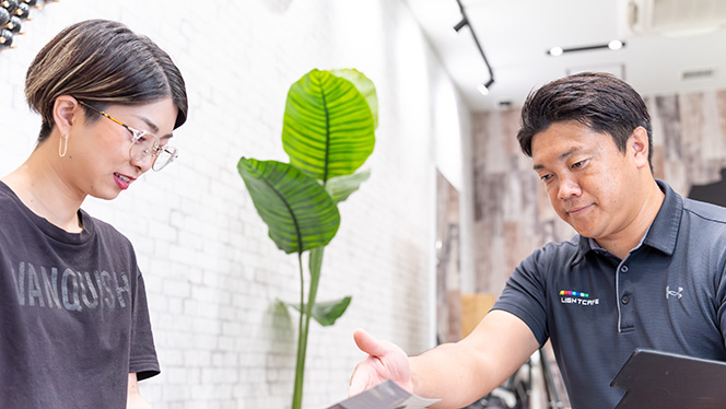 お客様の課題や理想像をしっかりヒアリングしたうえでレッスン内容を提示・実践していきます。